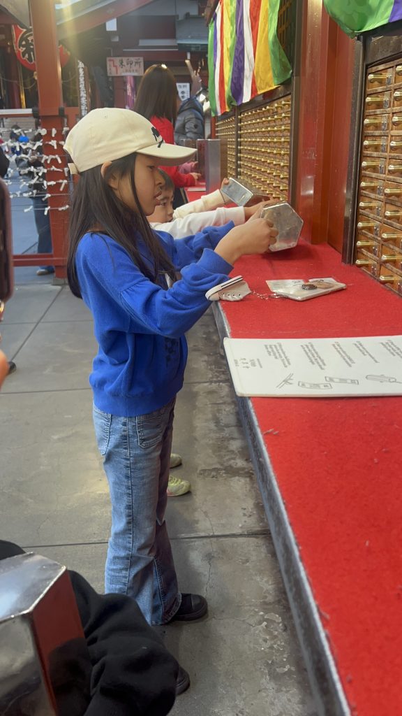 奥までいくとお寺の本堂があって、手を清めるところやおみくじもあったよ!今年はまだおみくじを引いてなかったからみんなで引くことに!