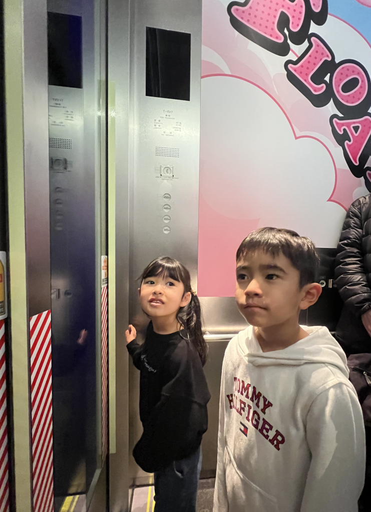 展望デッキを一周したら次はいよいよ地上445mの展望回廊へエレベーターで登っていくよ!