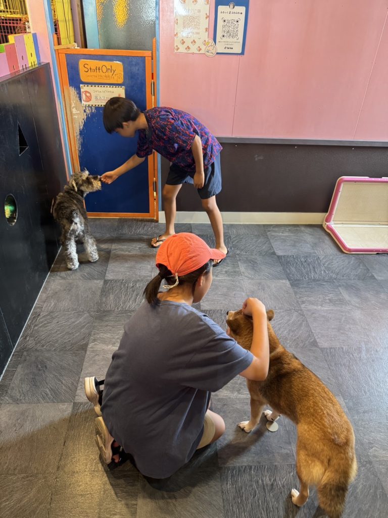 動物さんたちは交代制で、1日の中でふれあい体験に出る時間を決めているみたいだよ。1日中みんなといると、疲れちゃうよね~。やっぱり僕はわんちゃんが大好きだな~!柴犬のあまなつちゃん。可愛い~♪お客さんがなでていると、そのまま寝てしまうこともあるらしいよ^^あと、有料でおやつをあげることもできるよ!