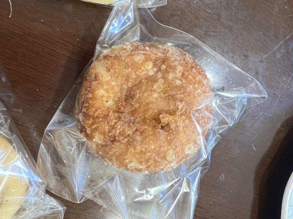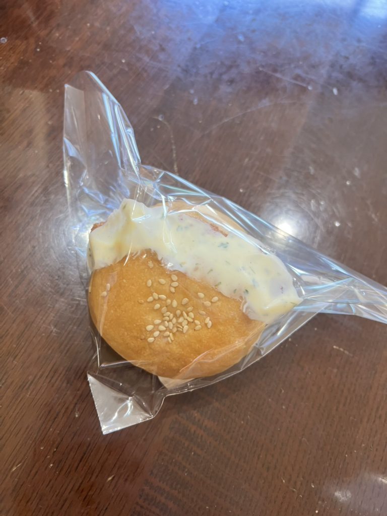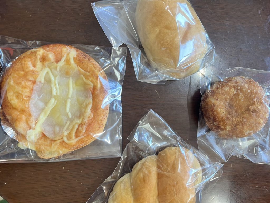 お店の中は狭くて、お客さんも何人かいたから写真は撮れなかったけど、買ったパンはこれだよ!今回は5個。