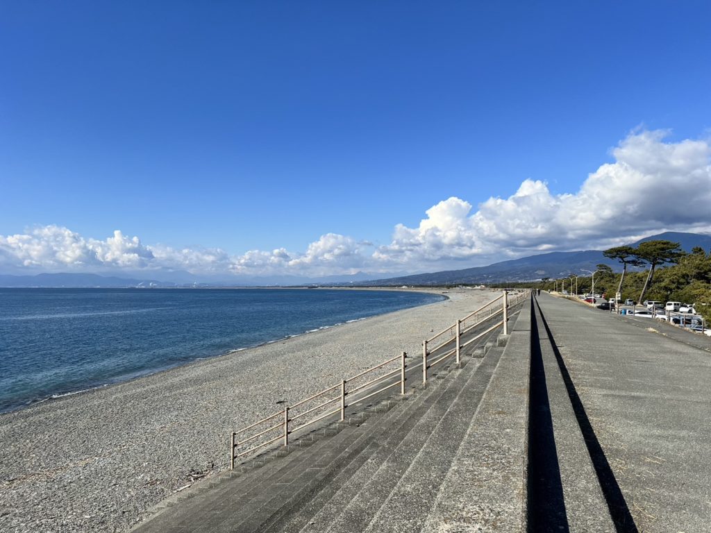 ここ千本浜の堤防をずーっと歩いていくと、沼津港の方にも行けるんだよ。